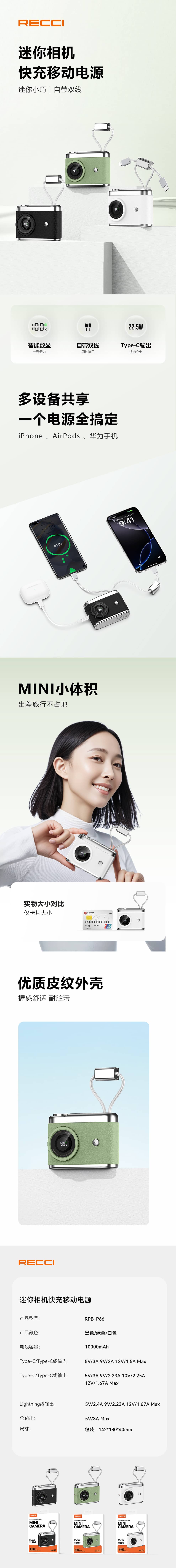 2-SMPJ00009 锐思迷你相机快充移动电源RPB-P66